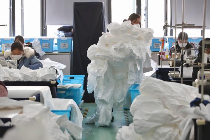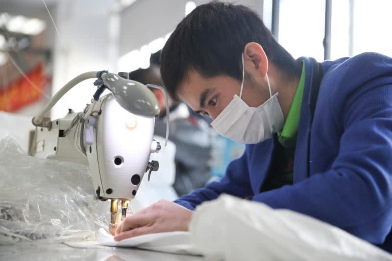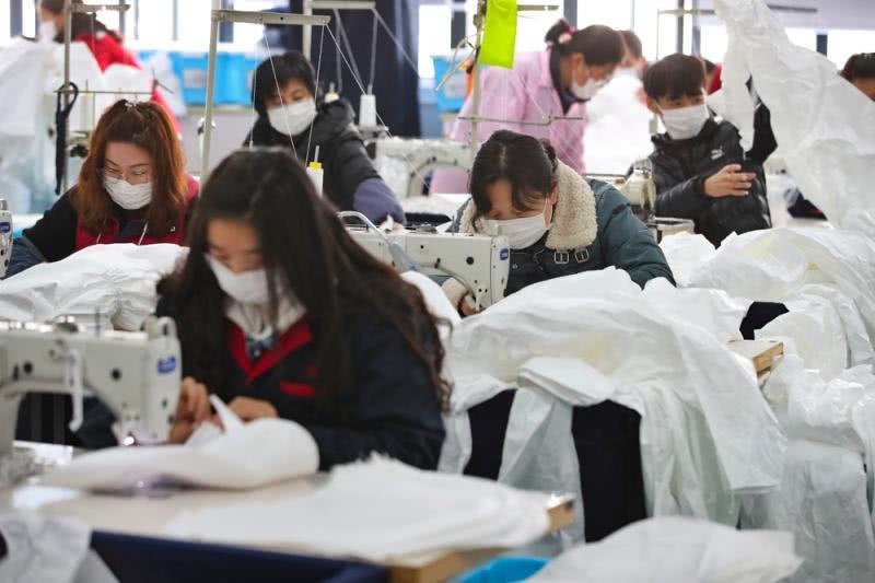 上海誠格安全防護(hù)用品有限公司防護(hù)服生產(chǎn)車間經(jīng)過了幾天的設(shè)備調(diào)整,50多個車位,70多名工人正在加班加點趕制醫(yī)用防護(hù)服。