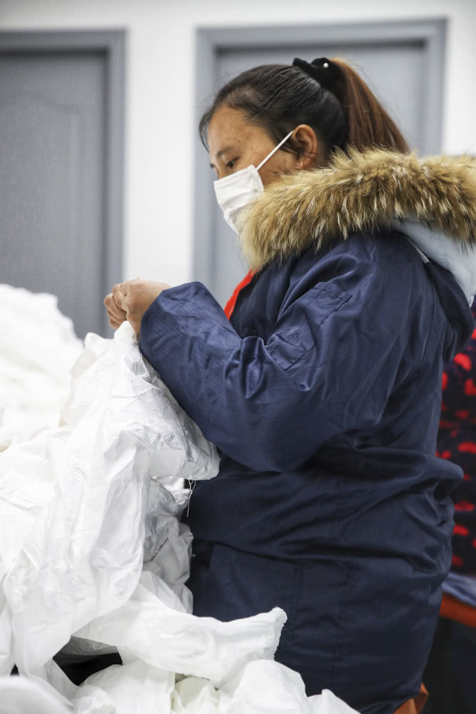 原本上海沒有專門生產(chǎn)醫(yī)用防護(hù)服的企業(yè),疫情發(fā)生后,公司與政府各個部門通力合作,僅用5天時間就完成了廠房、設(shè)備、原料、食宿、安全以及貿(mào)易運輸和生產(chǎn)線改造等各種問題。目前,誠格公司這兩天的產(chǎn)能在1600件左右,最近都在調(diào)整,短期產(chǎn)能目標(biāo)為每天生產(chǎn)9000件,目前工廠生產(chǎn)兩款防護(hù)服,主要供給外圍人員使用,還有醫(yī)護(hù)人員使用的也將馬上投產(chǎn)。