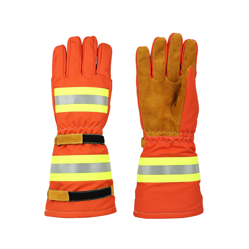 手套結(jié)構(gòu)組成:掌心、掌背、手臂采用雙層設(shè)計;阻燃層:采用芳綸面料;隔熱層:采用芳綸水刺隔熱氈;手掌關(guān)鍵部位加有防穿刺、防滑的皮料;反光標(biāo)識:手臂和手背處應(yīng)有阻燃反光帶;收緊裝置:手腕處應(yīng)有松緊調(diào)節(jié)大?。皇直厶帒?yīng)有大小調(diào)節(jié)裝置; 手套總長≥38cm;面料纖維含量:芳綸